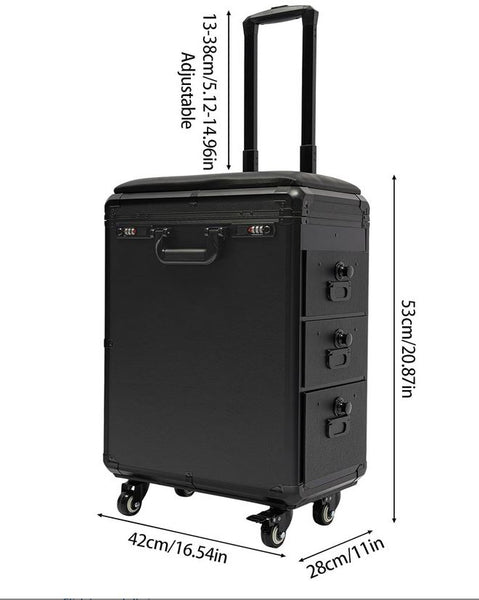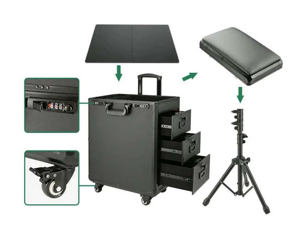 Tattoo Workstation Travel Case Perfect for Conventions and Guest Spot. 3 Storage Drawers, Armrest, Workstation, Rolling Suitcase.
