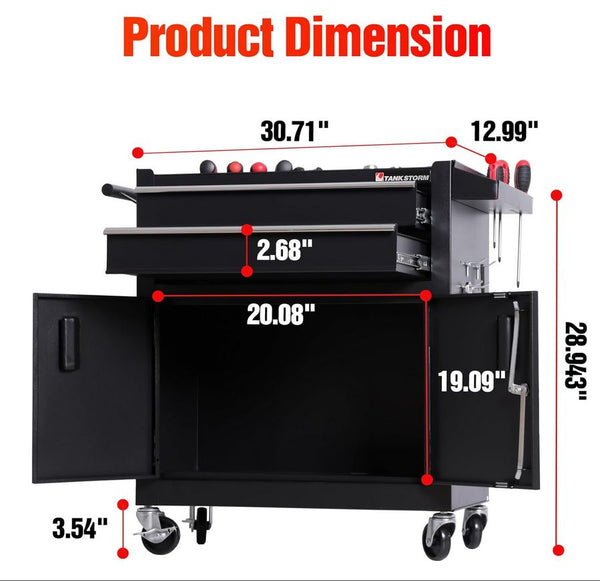 This quality rolling durable and sturdy tattoo workstation by TANKSTORM is made of high-quality cold rolled steel. It has two drawers for equipment and tattoo supplies and the bottom compartment can be used to store gallon sized soap and disinfectants.